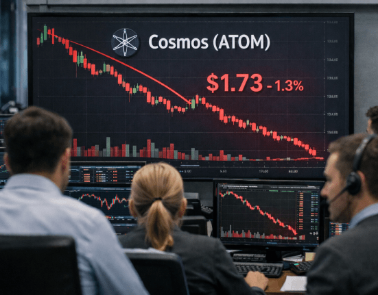 While Ether and Solana are in the green, some leading altcoins have been underperforming. Cosmos Hub (ATOM) is down 1.3%.