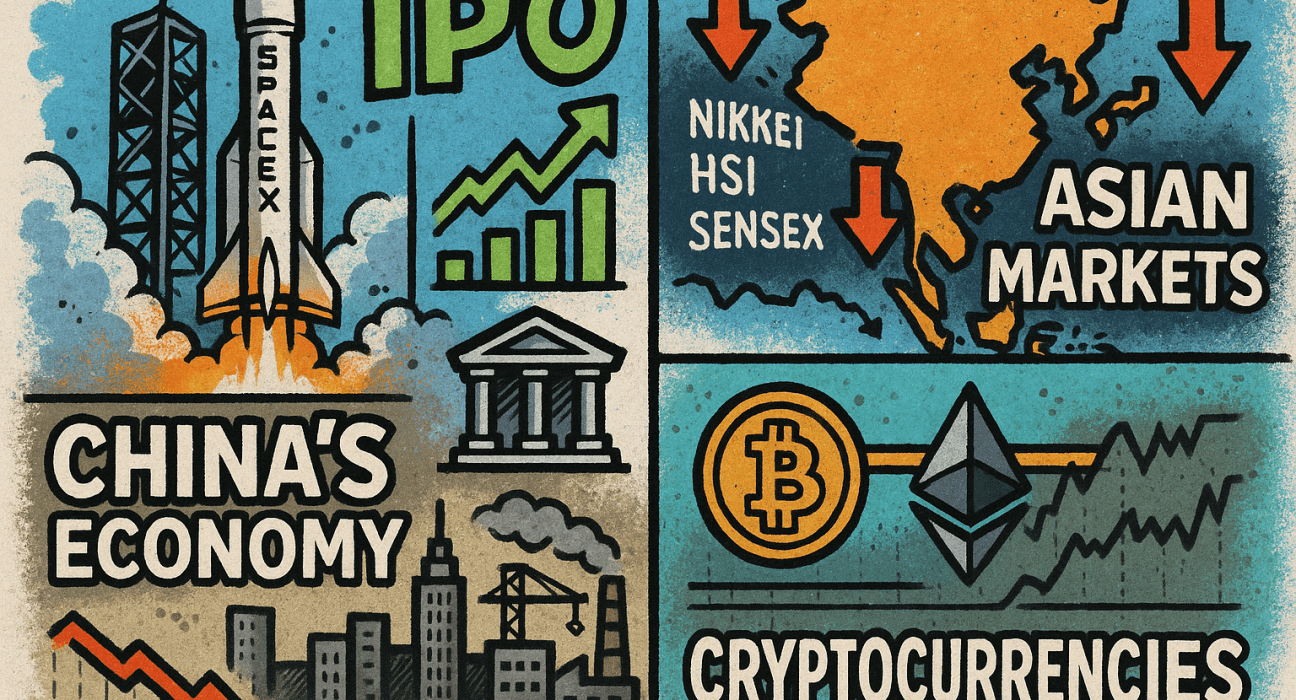 Global markets opened the week digesting a mix of corporate, macroeconomic, and asset-class developments, from early steps toward a potential SpaceX initial public offering to renewed signs of weakness in China’s economy, cautious trading in Asian equities, and tentative stabilisation in cryptocurrency markets. Together, the updates underscore a backdrop of uneven growth, policy uncertainty and